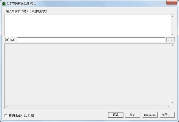 IL字节码解码工具ILByteDecoder是.NET逆向工具IL字节码解码工具,一个将十六进制的IL字节码解码成MSIL汇编代码的工具,纯绿色软件,解压即用,无任何广告。