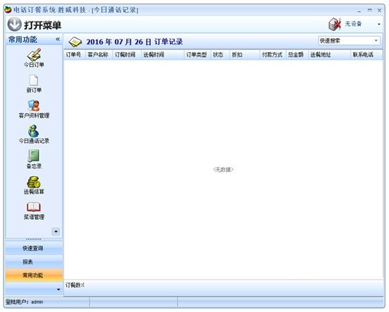 胜威电话订餐系统官方版是一款电话订餐管理的软件,胜威电话订餐系统软件界面简洁、功能强大,适合于有电话订餐服务的餐饮行业,通过这款软件可以帮助该行业的人提高电话订餐的效率,从而提升了业绩,是一款非常实用的软件。