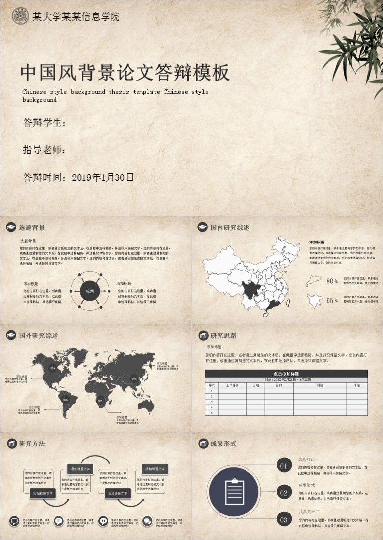 中国风答辩PPT模板是一套和答辩相关的PPT模板,有了这个模板,你只需要在模板里面修改信息即可,非常简单方便,zol提供中国风答辩PPT模板免费下载。