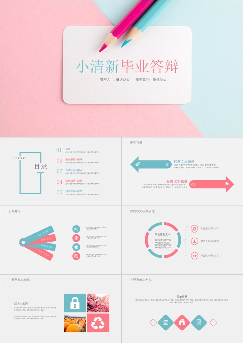 小清新答辩PPT模板是一套和答辩汇报相关的PPT模板,有了这个模板,你只需要在模板里面修改信息即可,非常简单方便,zol提供小清新答辩PPT模板免费下载。