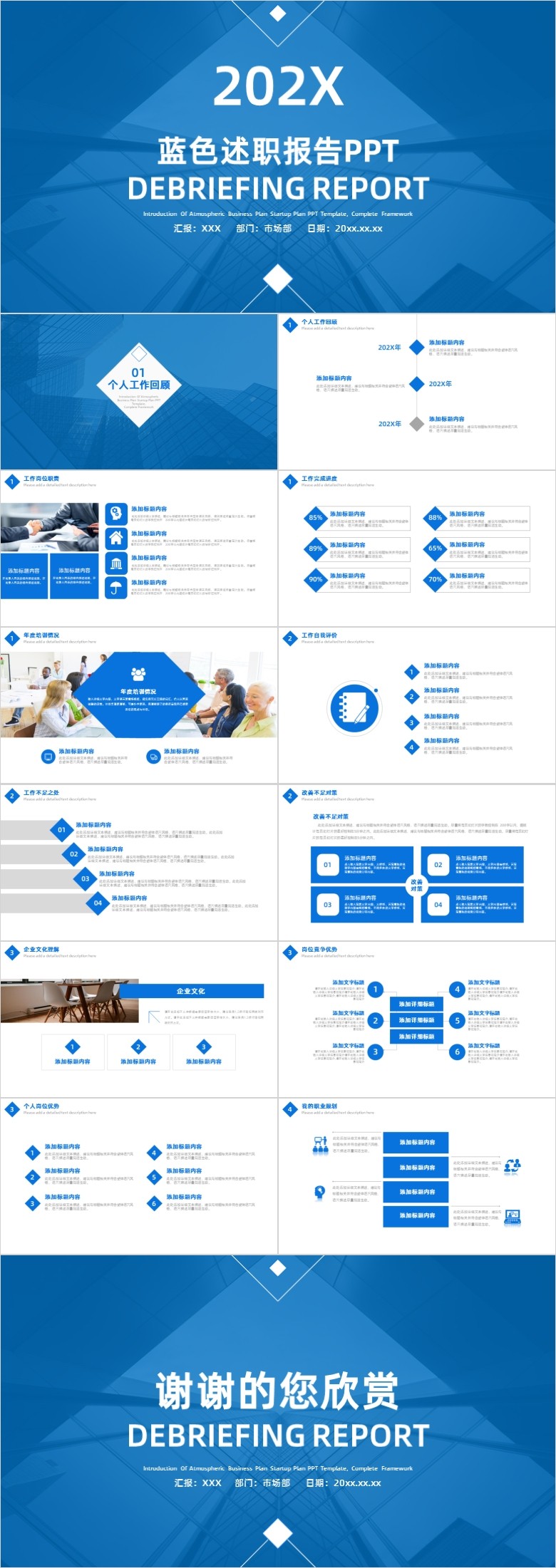蓝色述职报告PPT模板是一套和蓝色述职报告相关的PPT模板,有了这个模板,你只需要在模板里面修改信息即可,非常简单方便,zol提供蓝色述职报告PPT模板免费下载。