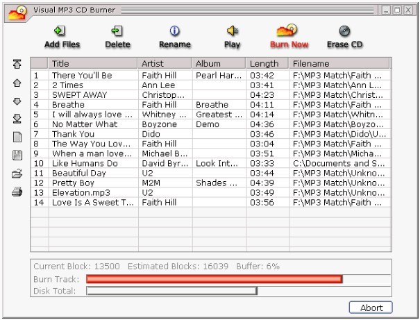 Visual MP3 CD是一个刻录软件,你可以直接将你的MP3、MP2、WAV、OGG和WMA文件直接刻录成为CD,这些CD能直接在所有的CD/DVD机上面使用,支持各种防烧死技术。