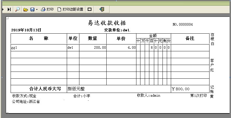 易达收款收据打印软件是支持审核功能,审核后的单据不能修改和打印的收据打印工具。易达收款收据打印软件功能特点1、只需输入小写金额,系统自动转换成大写金额;票据日期自动生成。2、对所有往来客户、单位信息只要输入一次系统就自动保存,下次自动调入,