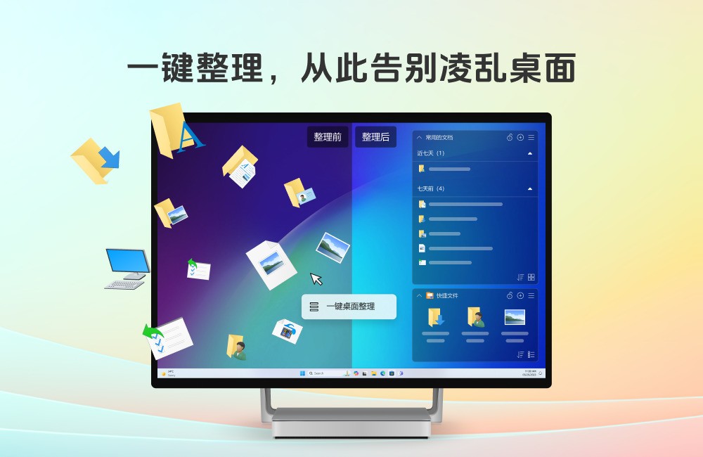 桌面整理,桌面文件整理,桌面美化,一键整理,快捷文件夹,桌面自动整理,纯净无广告;金舟桌面是一款专注桌面整理、简单易用的桌面管理软件。