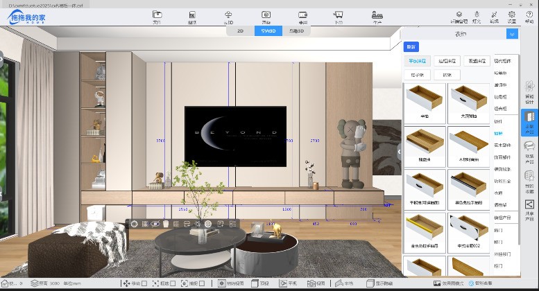拖拖我的家软件集全屋定制家居设计(户型绘制、家居布置、衣柜、橱柜、木门墙板、窗帘、卫浴参数化设计)、照片级渲染、手机3D展示、报价、下单、拆单、开料优化、设备加工、现场安装于一体。