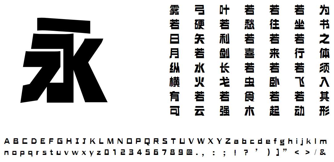 方正梯黑,梯黑是一款具有稳重力量感兼具几何形态的创意黑体,该字整体轮廓为正梯形,字体风格醒目、充满张力。笔画特点横细竖粗且棱角分明,使得该字体个性鲜明结构醒目有力的同时更具有强烈的视觉表现力。字体视觉重心居上,整体姿态更加挺拔,呈现出遒劲有力的美学感受。