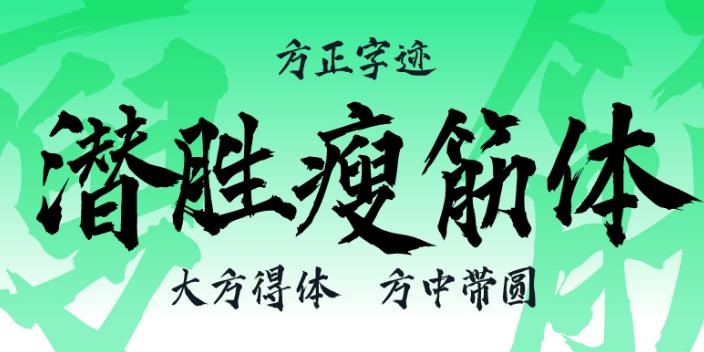 方正字迹-潜胜瘦筋体,潜胜瘦筋体,结体取法于挺拔瘦长的欧体,融入了颜体的雄劲豪放的笔意,重心平稳又大方得体,可见行笔内藏筋劲,笔画妙在方中带圆,让字体严谨而不失活泼。可适用于各种标题,产品包装,媒体广告,出版刊物,品牌宣传等应用场景。
