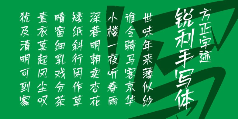 方正字汇-锐利手写体,前后对该字体多次打磨,力求精益。该字体具有以下特点: 1.独特性与创新性,该字体以其锋利的笔触和带有菱角的字形设计,形成了自己独有的风格。使得该字体在字库市场中具有很高的辨识度和吸引力。 2.传达力与情感表达,该字体在情感表达上,可以传达出一种坚定、果断、有力的情感。并在传递信息时更具有感染力和说服力。3.易于识别与记忆,该字独特的风格使得它在众多字体中易于被识别和记忆,这种特性使得该字体在字库市场中具有更高的用户粘性和重复使用率。